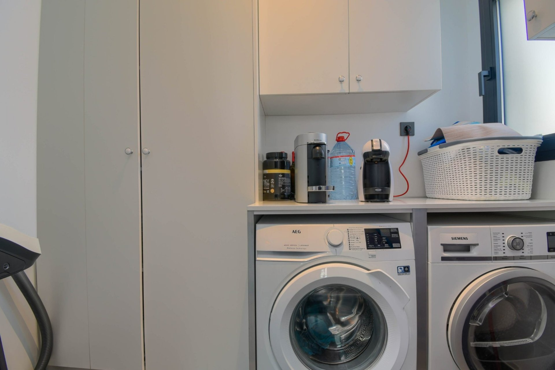 En la parte trasera de la casa hay un trastero y un cobertizo para bicicletas, en la parte delantera hay una zona de aparcamiento y una soleada terraza de 100 m2. En el lateral de la villa hay una ducha exterior y junto a ella un trastero, donde se encuentra la caldera de gas. Aire acondicionado/calefacción por todas partes con compresor Daikin. Calefacción central de gas. La villa cuenta con un moderno mobiliario que se puede adquirir (no está incluido en el precio)