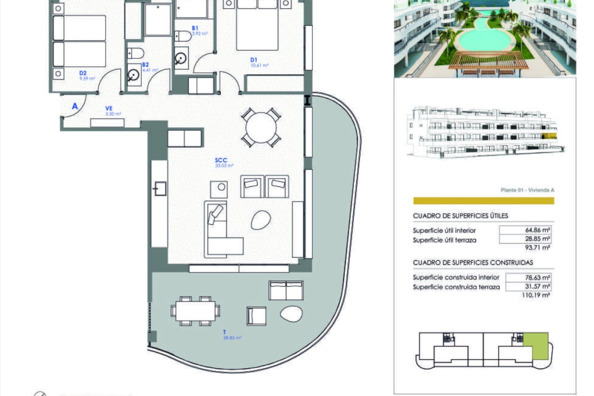 El complejo consta de 52 impresionantes viviendas, distribuidas en cinco edificios, cuidadosamente distribuidas en torno a un amplio espacio abierto. Cada terraza privada tiene vistas a este espacio central, donde las cascadas de agua conducen a una piscina infinita. El juego de luces y sombras enriquece el diseño arquitectónico, aportando profundidad y contraste a las estructuras predominantemente blancas.