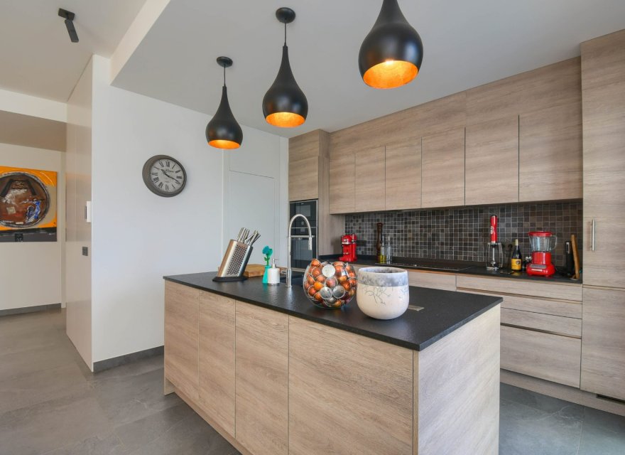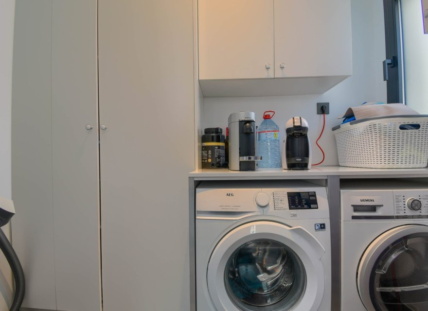 Z przyjemnością prezentujemy Państwu tę nowoczesną i wyrafinowaną willę, położoną od strony południowo-wschodniej w cichej dzielnicy mieszkalnej, z frontalnym widokiem na zieleń i góry oraz bocznym na morze i panoramę Benidormu. Willa posiada 2 sypialnie z łazienkami i jest luksusowo wykończona. Wbudowany system dźwięku przestrzennego Bose, rolety elektryczne i schowek. Kuchnia to otwarta przestrzeń z wyspą, wyposażona w wysokiej jakości sprzęt AGD marki NEFF, w tym piekarnik parowy Circotherm. Obok kuchni znajduje się schowek/pralnia z pralką i suszarką. Ponadto, ta piękna willa posiada fantastyczny prywatny basen z zadbanym ogrodem.