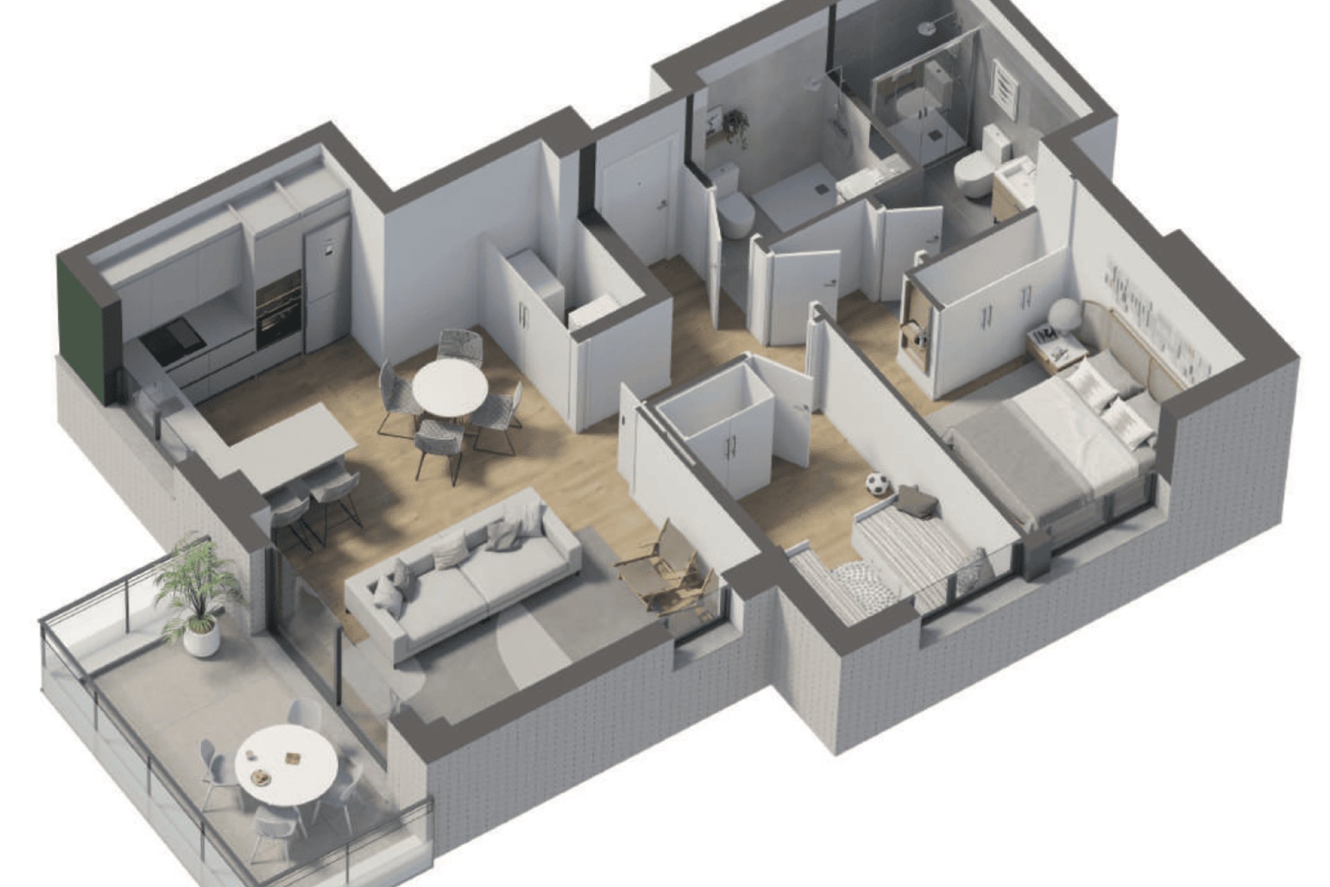 Apartamenty są przestronne i jasne, z maksymalnym wykorzystaniem naturalnego światła. Nowoczesne wnętrza łączą się z wysokiej jakości materiałami i ekologicznymi rozwiązaniami. Każdy apartament jest wyposażony w system klimatyzacji aerotermalnej, przyjazną dla środowiska i energooszczędną technologię, która zapewnia ogrzewanie zimą i chłodzenie latem przy niskich kosztach.