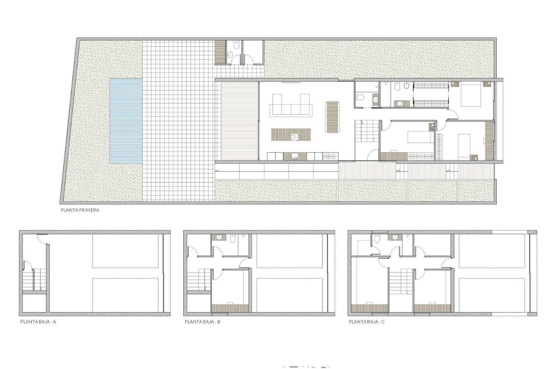 - 🌿 Pierwsze piętro: obejmuje przestronny salon, kuchnię z jadalnią, trzy sypialnie, apartament główny z łazienką i garderobą, łazienkę gościnną oraz dostęp do tarasu i ogrodu z prywatnym basenem.