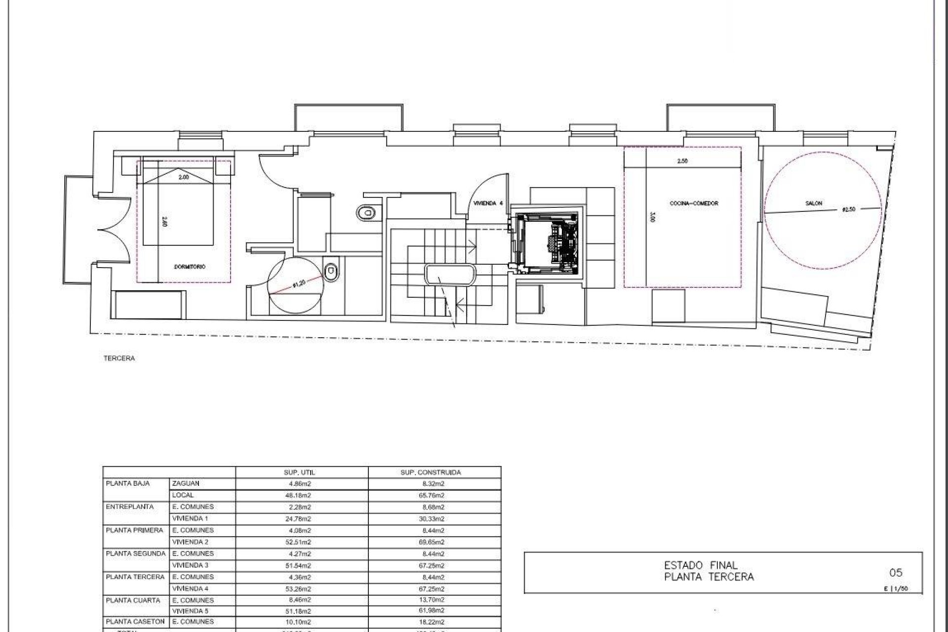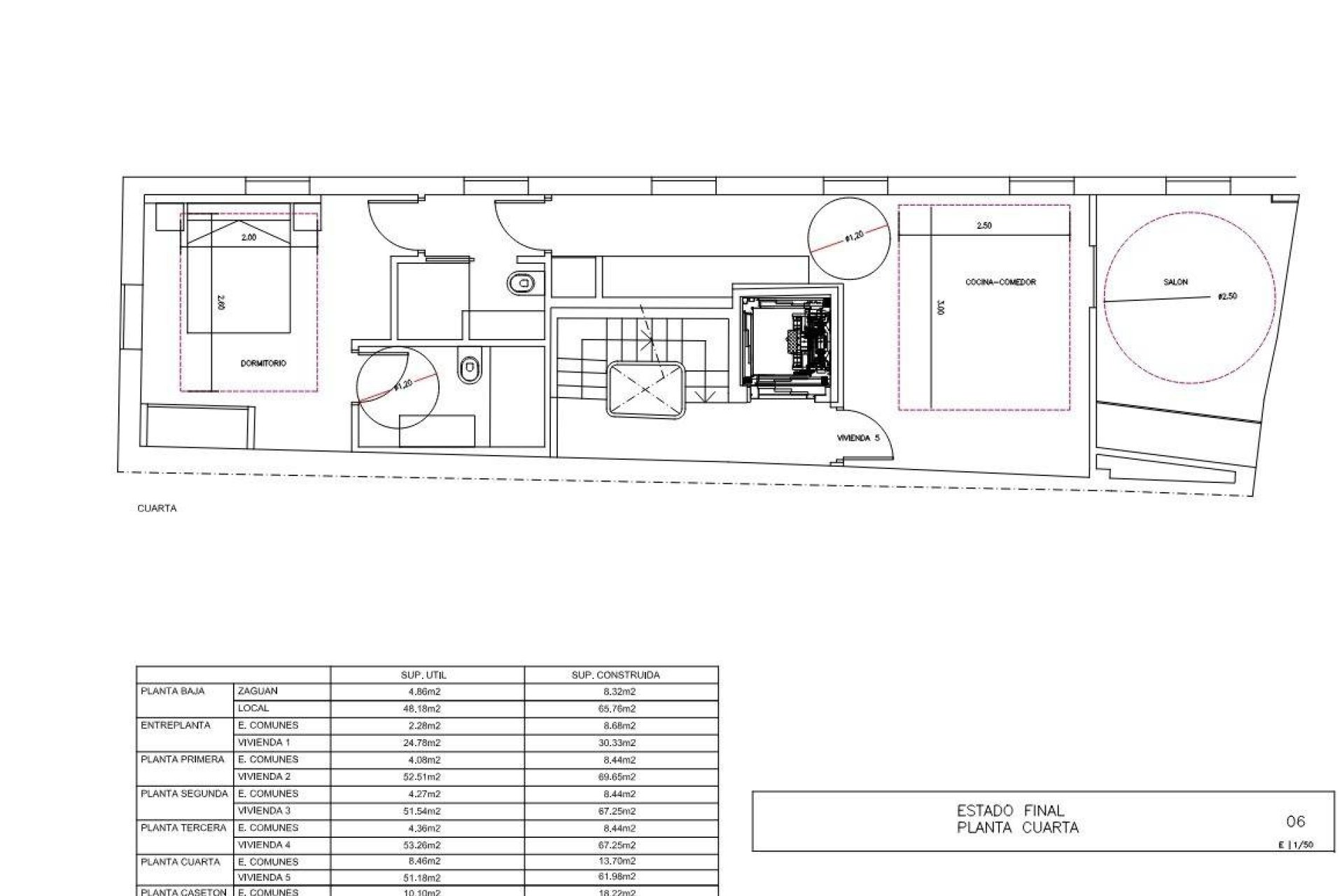 Fifth Floor: Laundry room, terraces, hydraulic elevator shaft, and staircase.