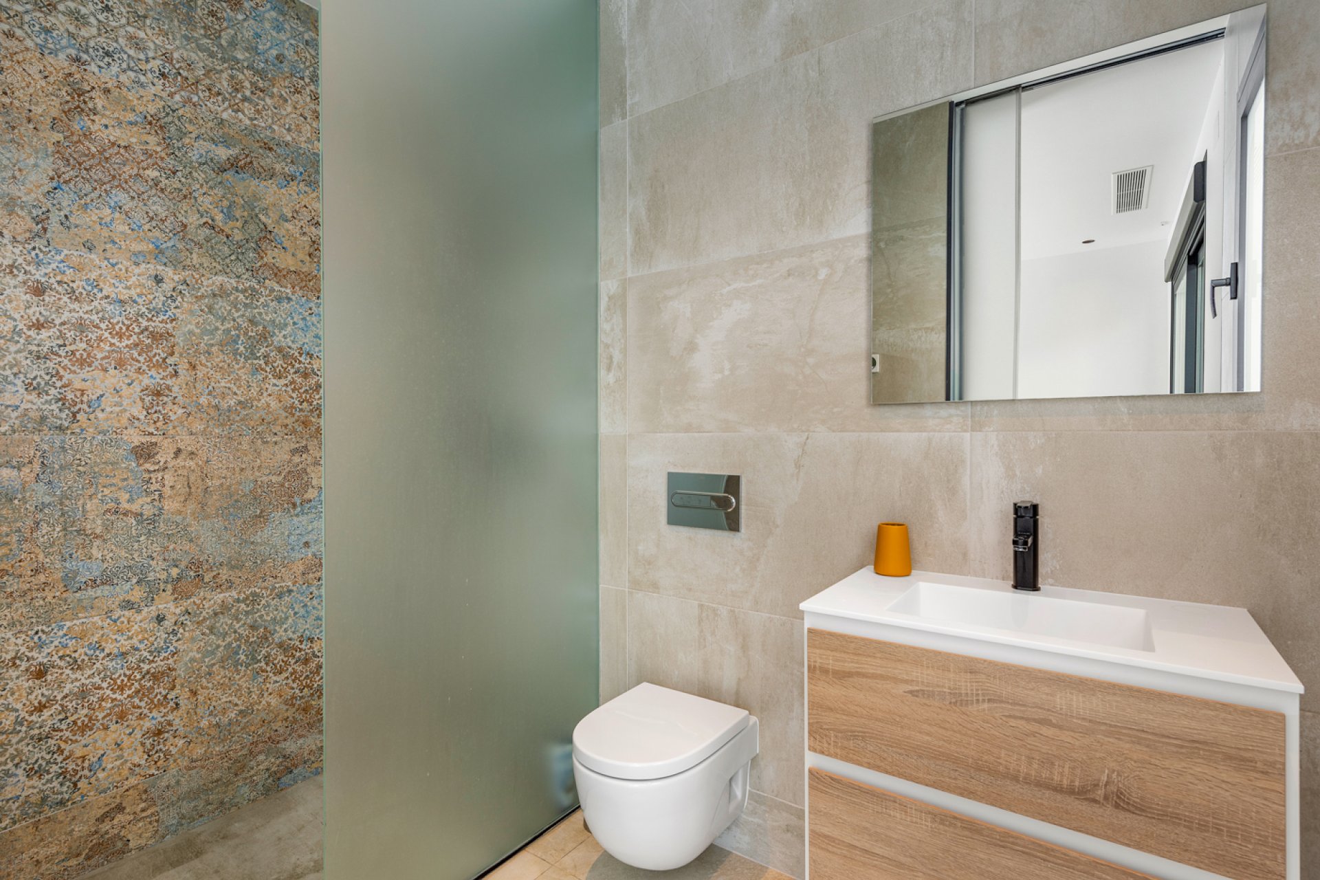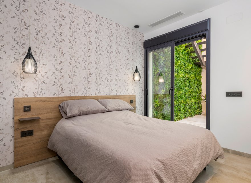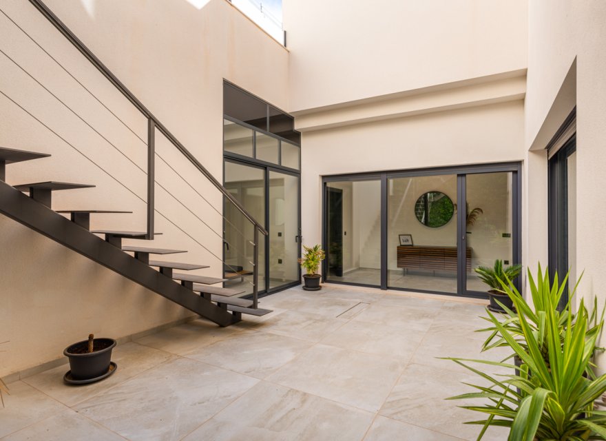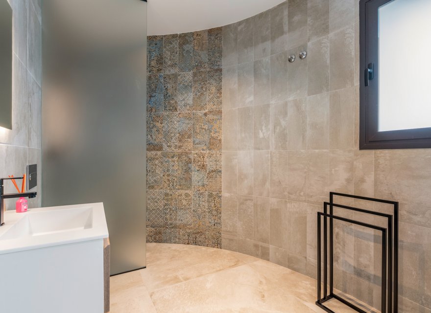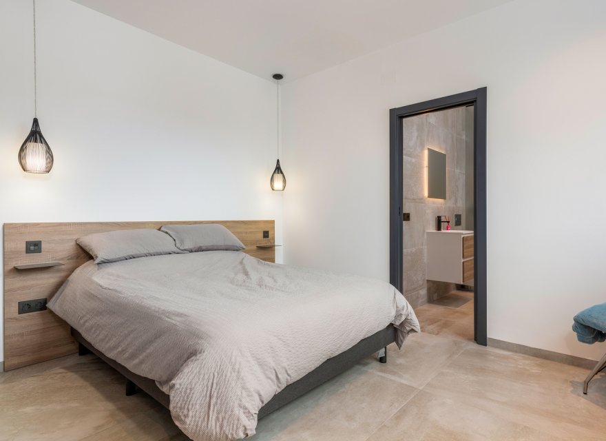 Luxury 5 bedroom / 6 bathroom villa with views in Ciudad Quesada. Beautiful luxury villa with a total living area of 333 m2 divided on two levels. It consists of a total of 5 double bedrooms, all of them with en-suite bathrooms, an additional bathroom and a guest toilet. The main floor consists of two bedrooms with en-suite bathrooms, a guest toilet, and a lovely open plan kitchen, living room and dining room. In the living area you have large sliding doors that opens up completely and gives a great indoor / outdoor living feature. The lower level consists of three bedrooms with en-suite bathrooms, a kitchen and utility room, a large living room, a bathroom, two storage rooms. The rooms in this level have access to a lovely patio. From the living room on this level you have direct access to the garage and techical room. The villa is equipped with central air condition (hot/cold), underfloor heating in the bathrooms, double glazes windows and security door. Outdoor areaThe villa is set on a lovely corner plot of 462 m2. The pool area is east facing, giving you amazing views over the surrounding area and to the sea. Around the pool you have a beautiful tiled area with space for several outdoor seating areas and sun beds. From the pool area you have external stairs leading you to the large roof terrace. Here you have one part that is tiled and the other part with artificial grass, both of them with a lot of space for outdoor entertainment and with amazing views. At the entrance to the house you have another lovely tiled garden area that faces west. This area is perfect to enjoy the afternoon / evening sun. At the lower level you can find a large tiled patio with an artificial vertical garden. This patio can be access from the garden through external stairs, and also from the living room and 2 of the bedrooms in the lower level.