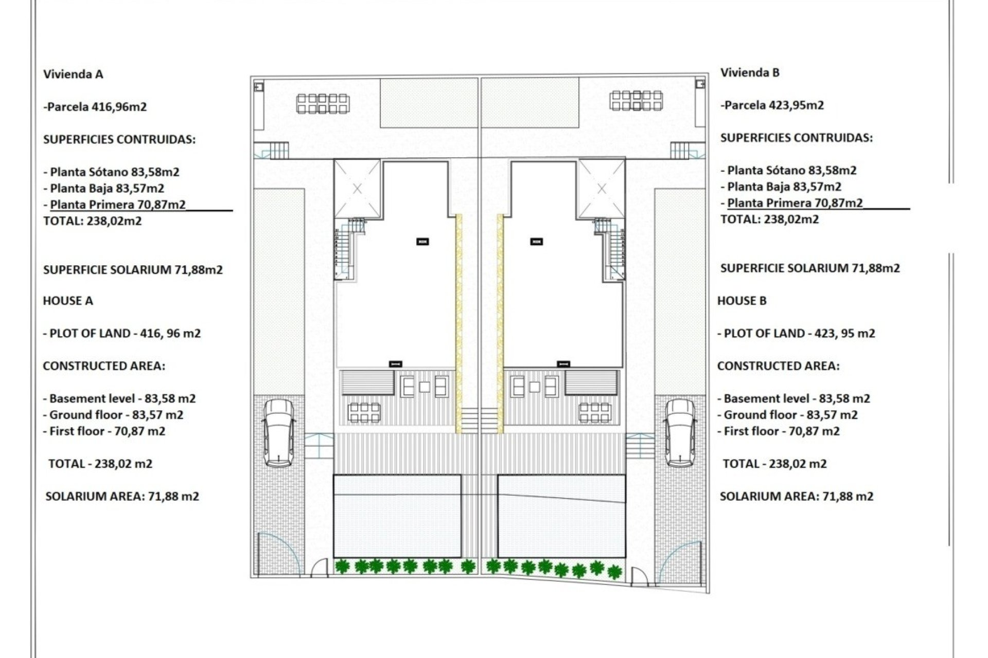 The exterior design of these villas reflects the essence of Mediterranean style, with clean, modern lines that blend harmoniously with the natural surroundings of Torrevieja. Each villa has a spacious private garden that includes a swimming pool, perfect for enjoying the sunny Costa Blanca days. The 420 m² plot provides plenty of space for outdoor relaxation, with carefully landscaped garden areas providing a touch of greenery and freshness. In addition, the off-road parking space ensures convenience and security for residents. The private solarium is a highlight, offering panoramic views of the area and an additional space for sunbathing or enjoying outdoor gatherings. The façade of the villas is designed with high quality materials that not only ensure durability, but also add a sophisticated and contemporary visual appeal.