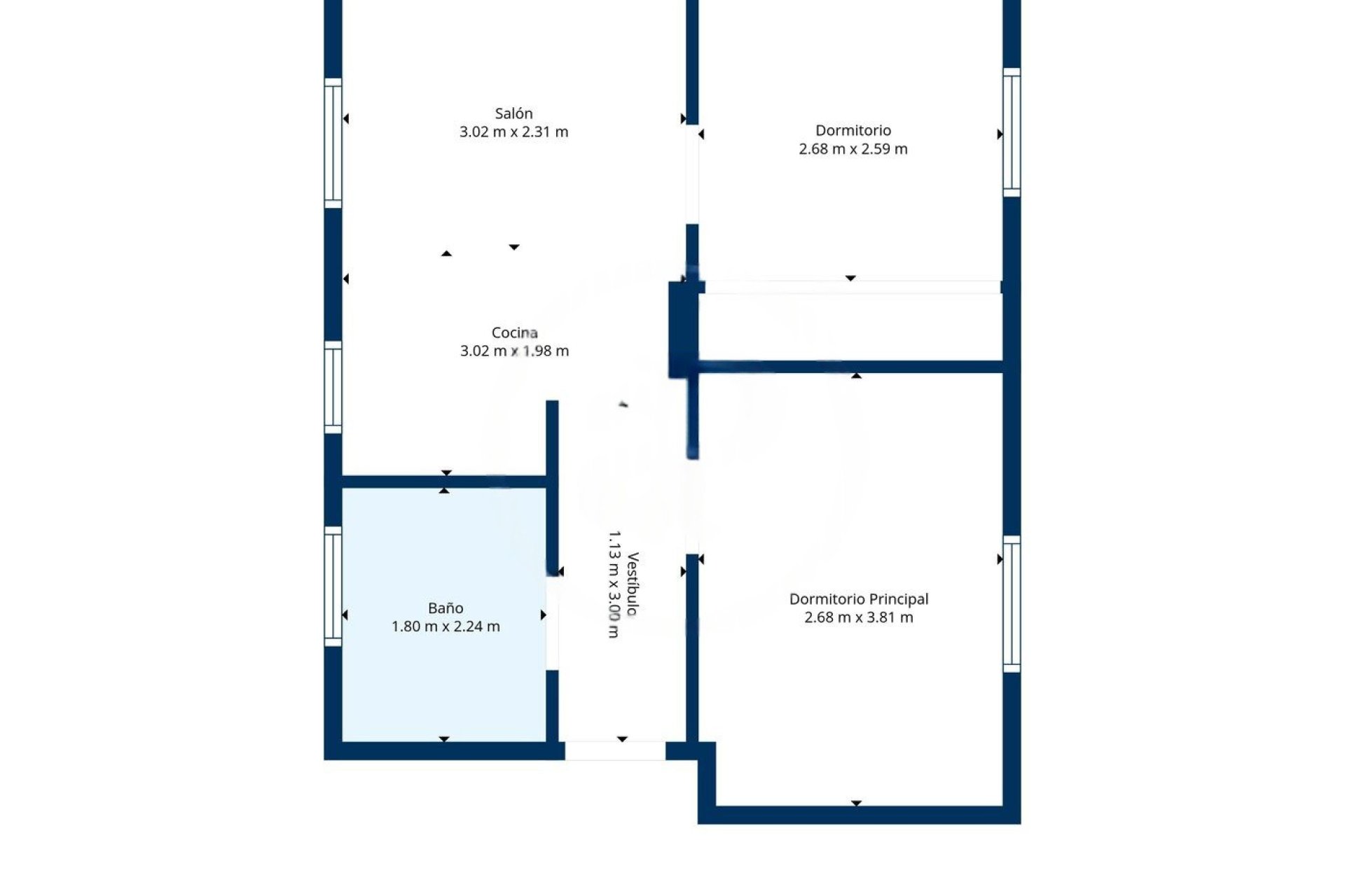Layout includes two double bedrooms with built-in wardrobes and a full bathroom with laundry cabinet.