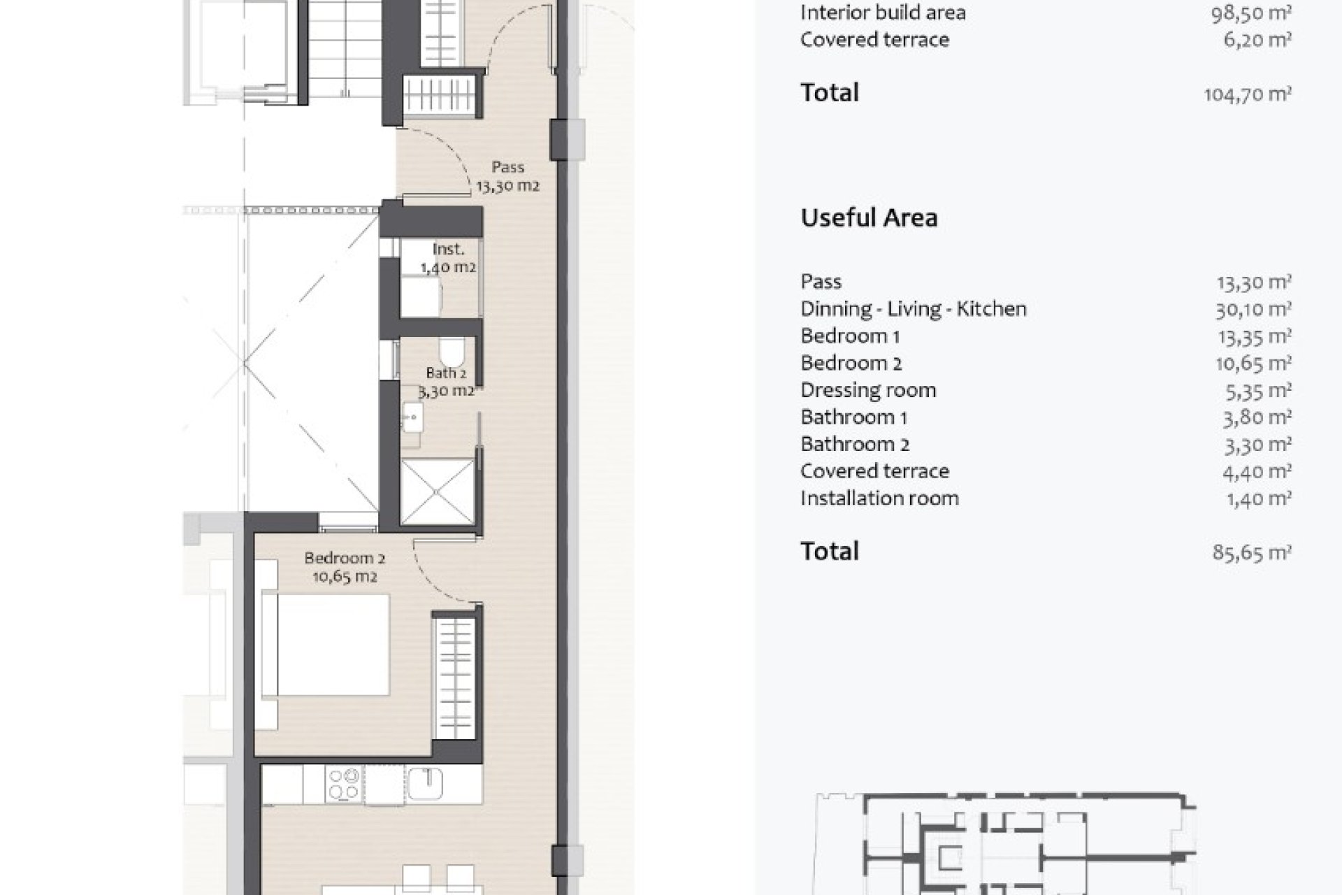 Этот экологически ориентированный проект с энергетическим сертификатом класса A сочетает в себе устойчивость и современную роскошь. Он расположен всего в одной улице от пляжа и включает:
