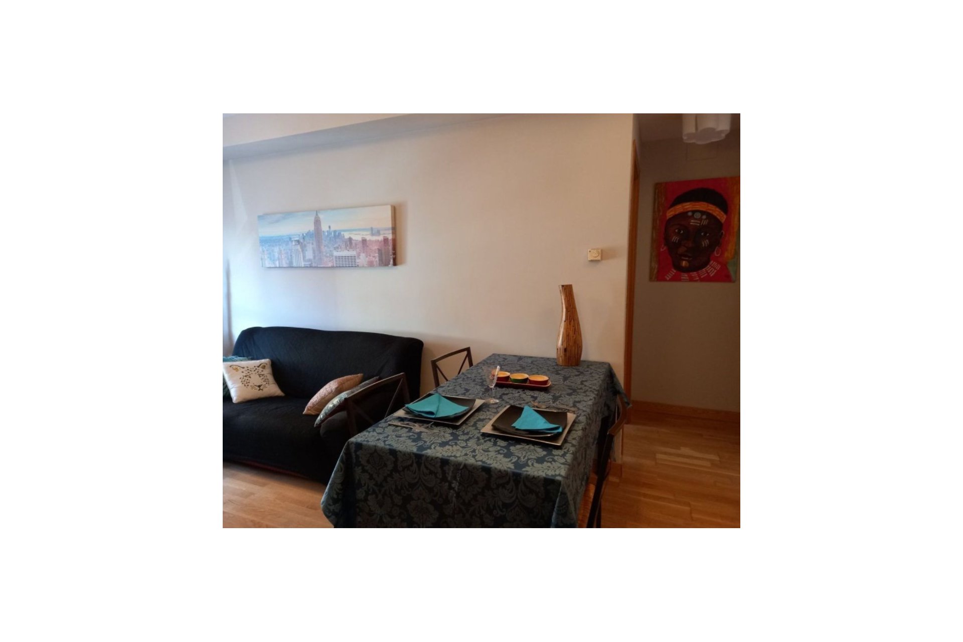 Нерухомість розташована біля Пласа Кастілья та Чотирьох веж у Мадриді. Нерухомість має 1 спальню, 1 ванну кімнату, кухню, вітальню, комору. Також включає паркувальне місце та опалення природним газом. Розташована поблизу всіх видів послуг, муніципального спортивного центру Антоніо Діаса Мігеля та Парку Родрігеса Сагауна. Добре сполучення з громадським транспортом.