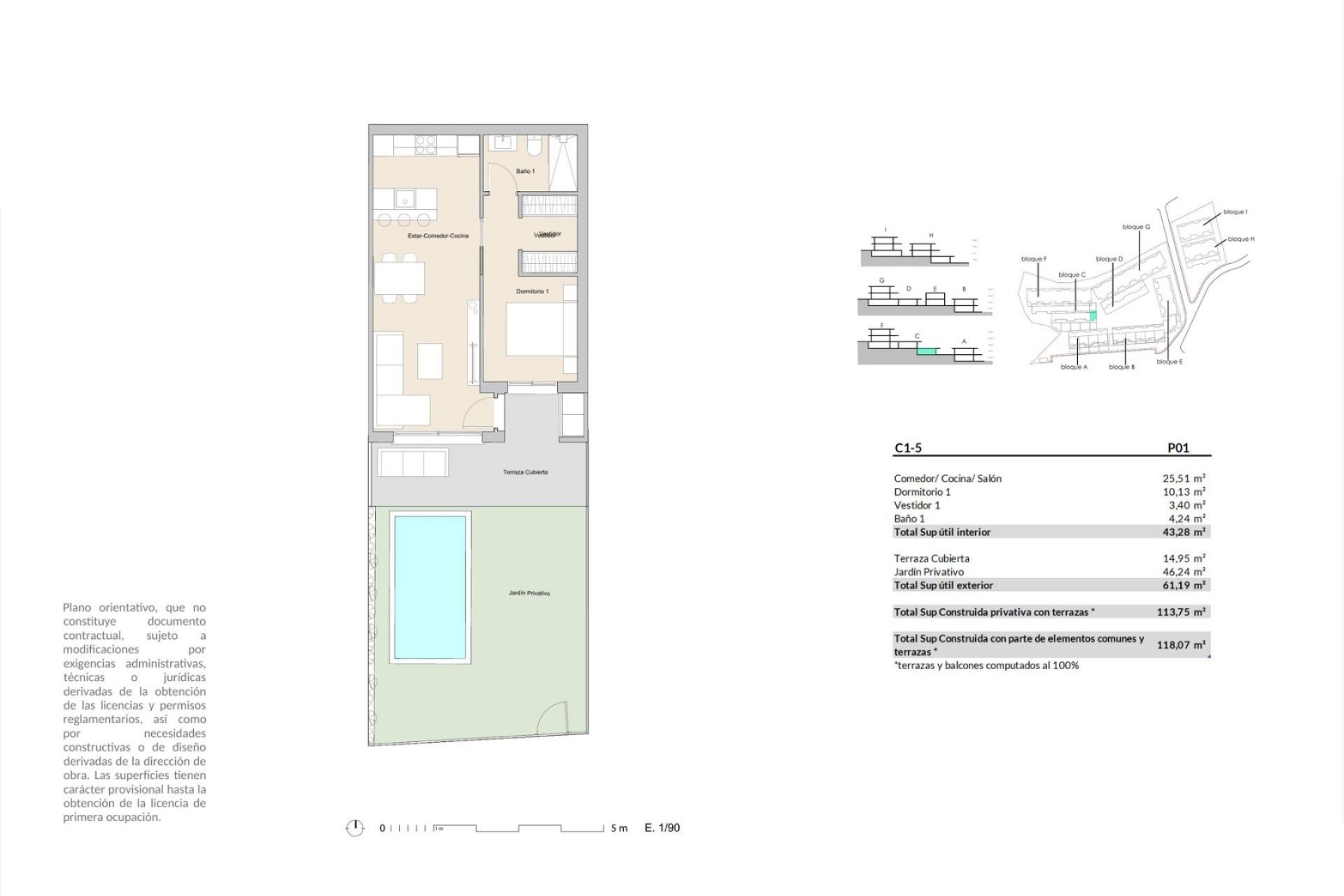 Комплекс складається зі 123 будинків, розташованих на двох ділянках, з варіантами з однією, двома та трьома спальнями. Його сучасний дизайн поєднує функціональність та тепло: вітальні з відкритими кухнями, просторі спальні, великі вікна та тераси, що виходять на південь, що наповнюють простір природним світлом. Багато будинків мають приватний сад або солярій, і є навіть можливість додати джакузі або приватний басейн, створюючи унікальний будинок, адаптований до будь-якого способу життя.
