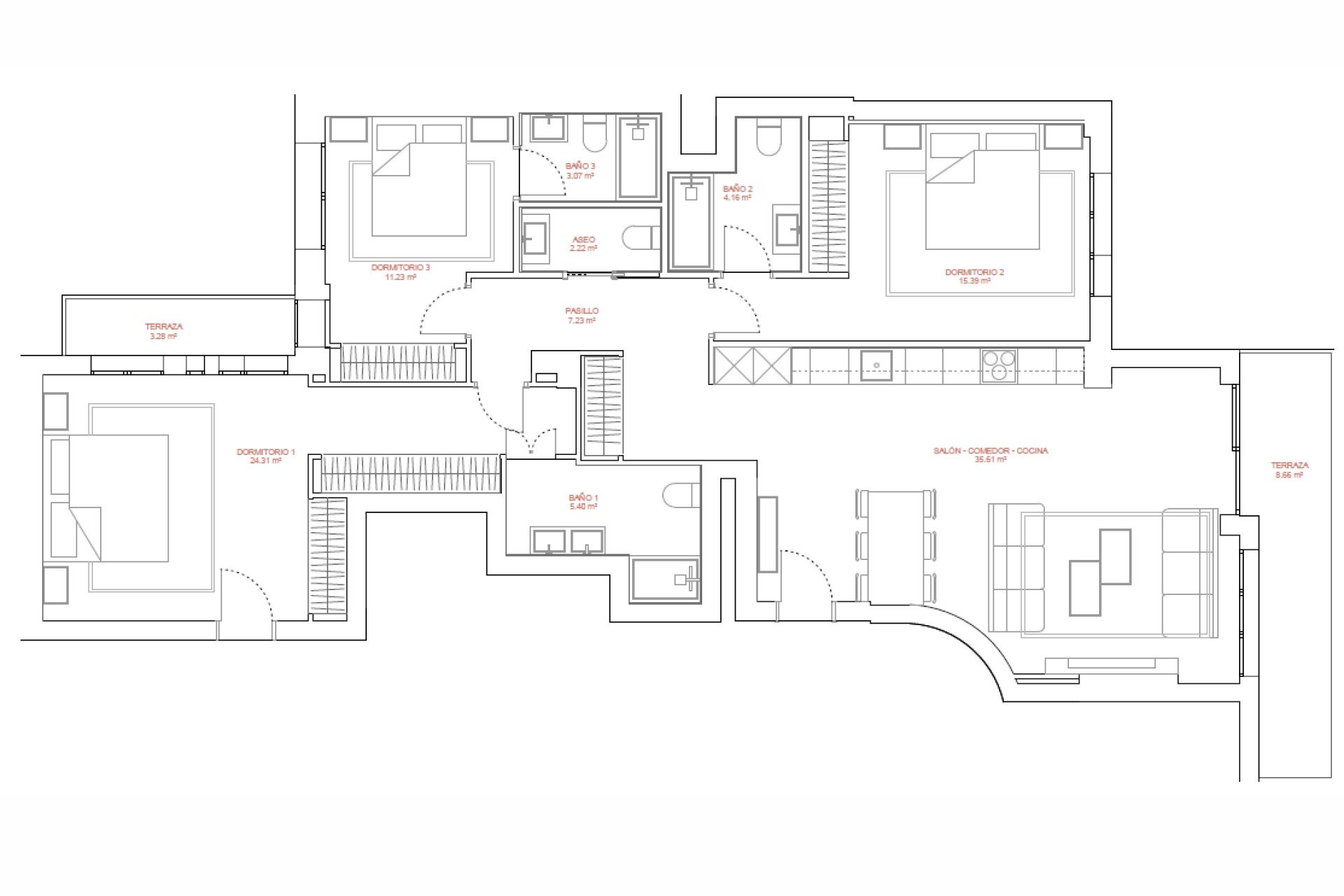 - 3 спальні
